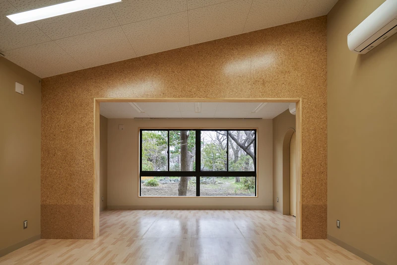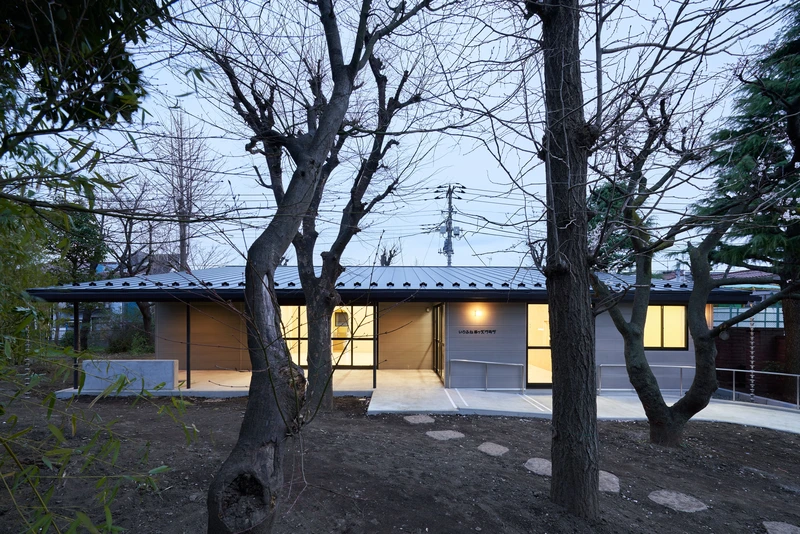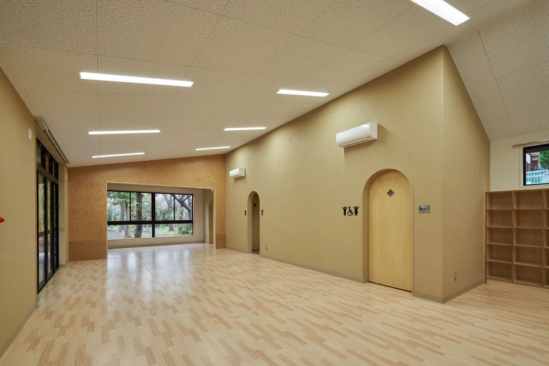 学校の中の「いりふねのもり」と呼ばれる緑豊かな場所に木造平屋建てのキッズクラブを計画しました。