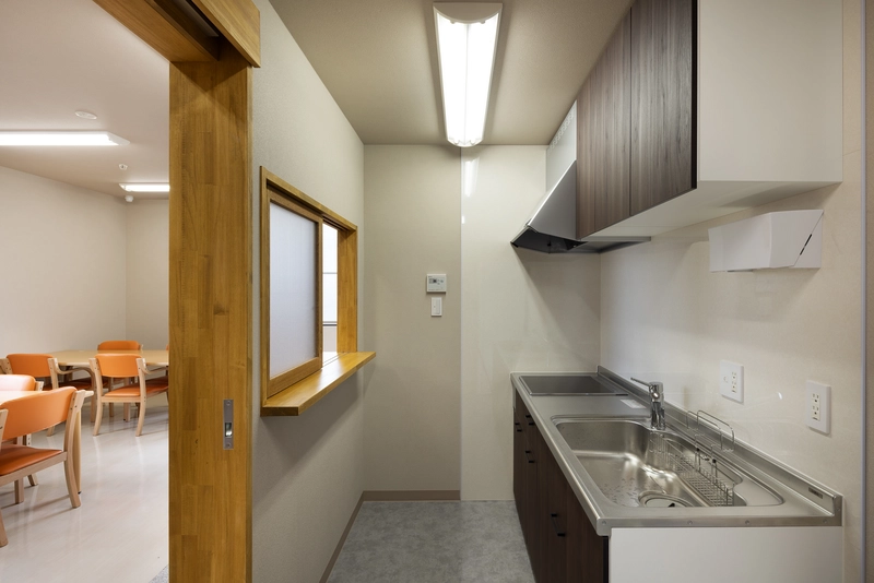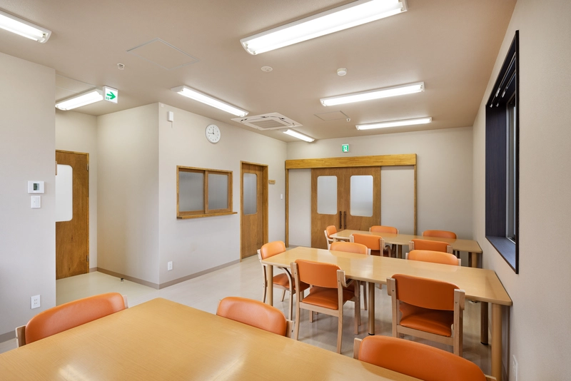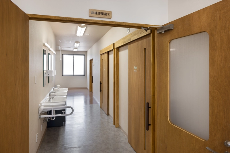 利用者が迷わず移動でき、スタッフが見守りや支援を行いやすいレイアウトとすることで、日々の運用がスムーズになるよう工夫しています。また、医療施設特有の無機質な印象をやわらげるため、内装には木の素材感や落ち着いた色合いを取り入れ、自然光や風が感じられるよう開口部の調整も行いました。