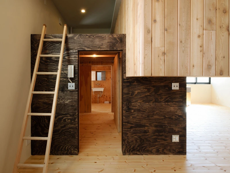 廊下のような細長い空間、天井高さの低い真ん中の空間、水廻りとその上部のロフトなど、空間的にはつながった様々なスペースがそれぞれの居場所となります。