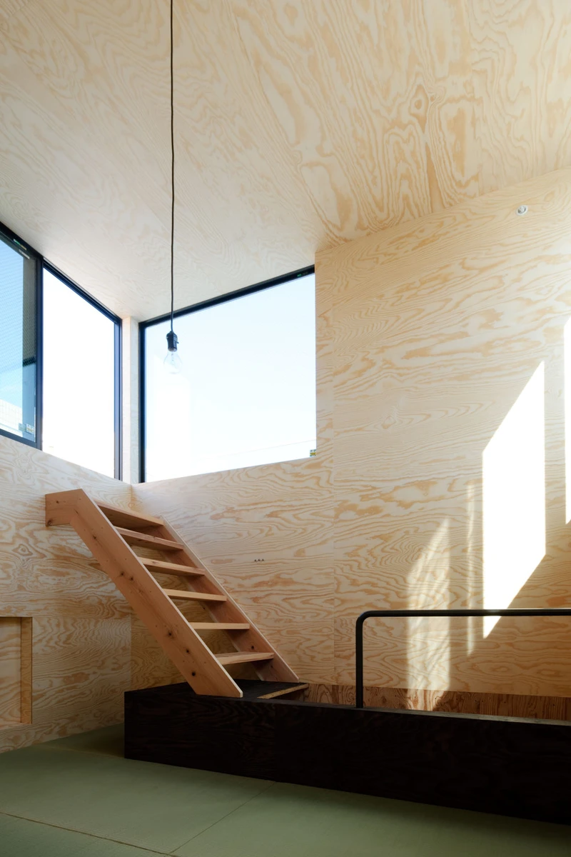 2階中央の部屋は床面から浮かせて屋上に突き出すことで、通風、採光を確保しています。