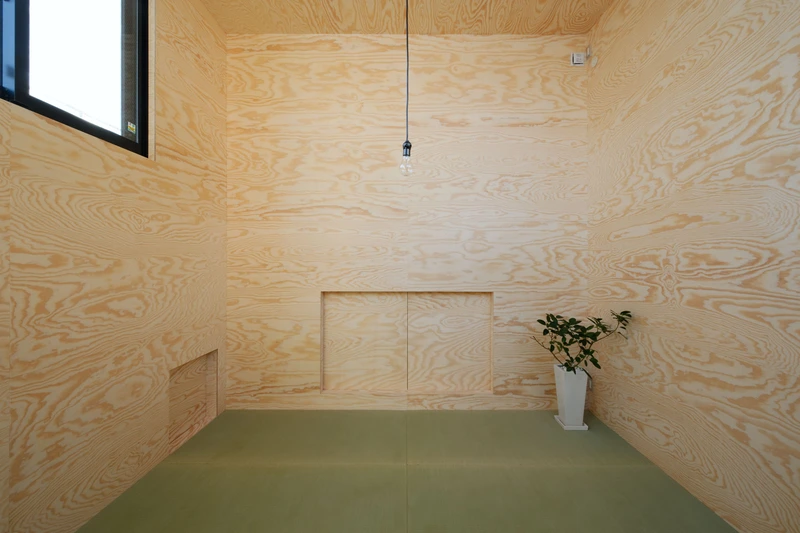 1階は中央の収納を中心に3帖と4帖半のスペースを囲むように配置しました。通常はワンルームですが使い方に応じて収納周囲の建具をスライドさせ各スペースを緩やかに仕切ることができます。